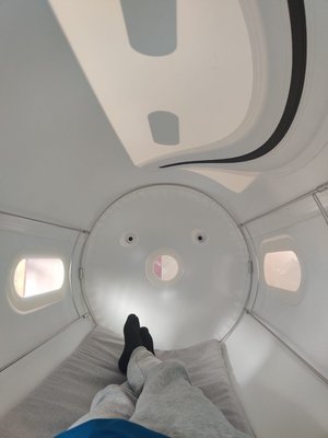 The chamber was clean and the room has a really nice feel to it. I felt really relaxed (I fell asleep a few times).
